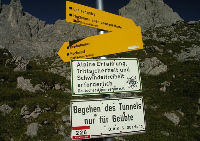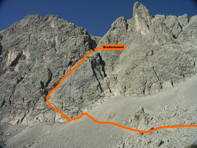 Klettersteig mit dem Brudertunnel benötigt man etwa 30 min. Am Tunnelausgang