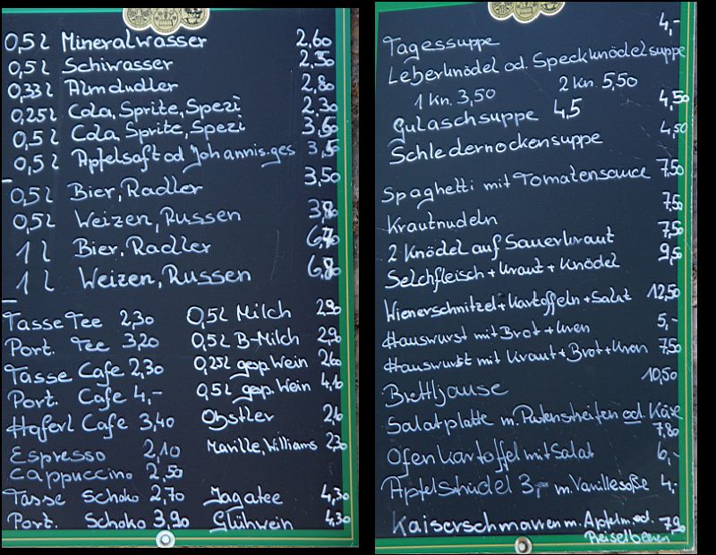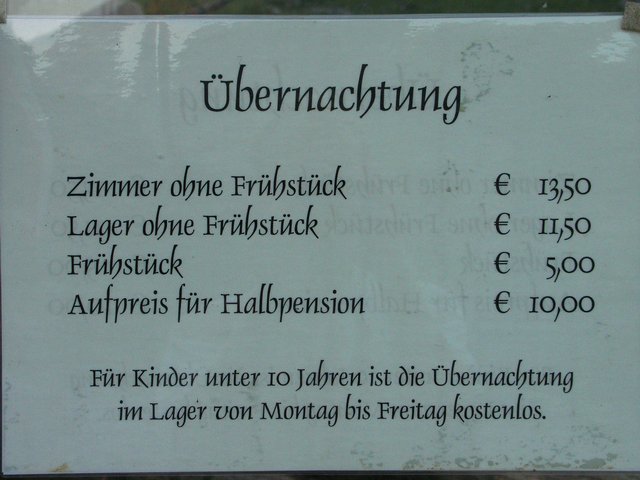 Das Preislevel der Lamsenjochhütte ist recht gehoben wenn man sich oben die Preise so ansieht. Der neueste Witz am Engparkplatz: Bei Busen ist die oft übliche Essensausgabe am Parkplatz verboten, anscheinend mit der Begründung "Naturschutzgebiet". Naja, man muß sich ja nicht an jeden Blödsinn halten.