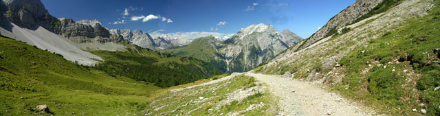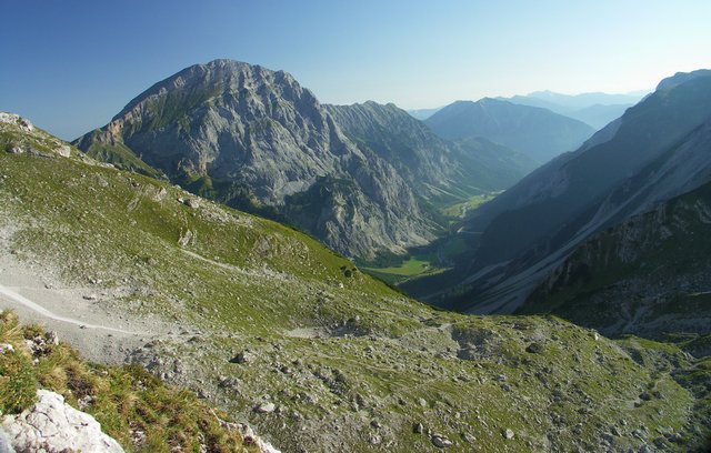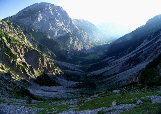 Der Blick vom Steig ins Falzthurntal mit der Gramaialm 8.36 Uhr Am Eingang