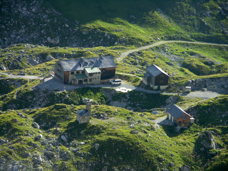 Binsalm Niederleger auf 1502 m. Die Gastätte ist bei Engtouristen