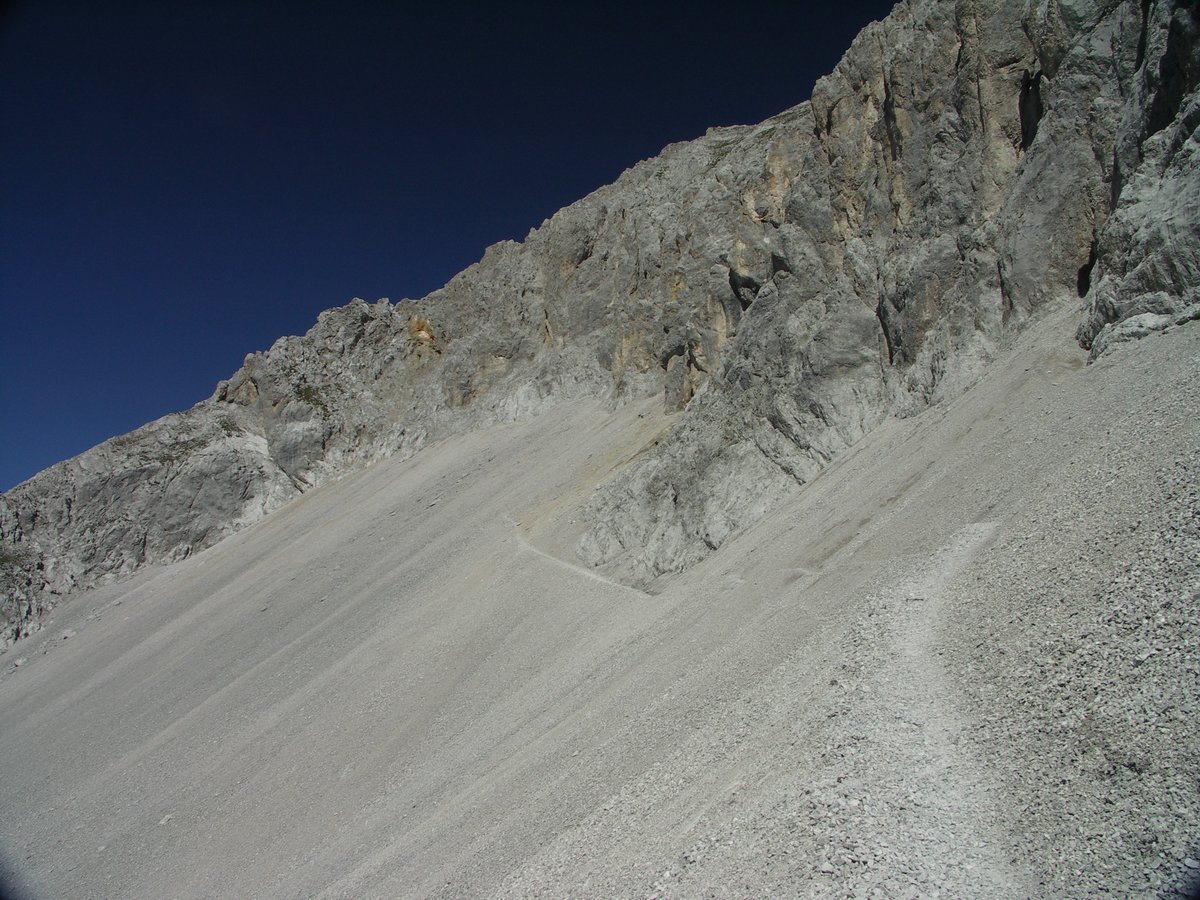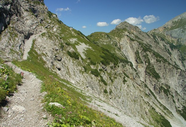 geht es ein paar Meter runter und dann nach rechts weiter die Hangquerung.